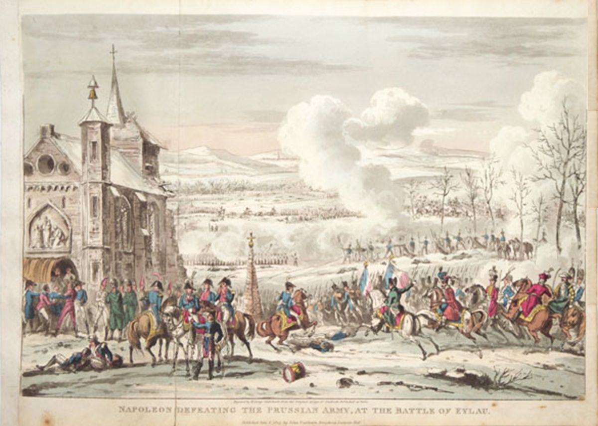 1825 , Bitwę w Iławie (9 luty 1807 r.). Grawerunek George'a Cruikshanka według oryginalnego projektu Swebacha. Wydana w Paryżu”. Opublikowano 6 czerwca 1825 roku przez Johna Cumberlanda.Skomentuj zdjęcie |