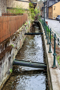 Młynówka na prawym brzegu rzeki Olzy więcej zdjęć (43) Młynówka jest sztucznym kanałem, którego historia sięga czasów późnego średniowiecza. Jest zasilana w wodę przez śluzę na rzeczce Puńcówka w Lasku Miejskim, dalej biegnie wzdłuż ul. Przykopa, mija Górę Zamkową, przepływa przez teren Browaru Zamkowego i Energetyki Cieszyńskiej i po ok. 2500 m. wpada do Bobrówki w dzielnicy Mała Łąka. Dawniej Młynówka zaopatrywała w wodę dzielnicę rzemieślników ( garbarzy, białoskórników etc. ) w rejonie ul. Przykopa, który to odcinek jest obecnie nazywany Cieszyńską Wenecją. Napędzała też młyn miejski przy Młyńskiej Bramie. Obecnie jest integralnym i malowniczym składnikiem kulturowego i historycznego krajobrazu miasta. ul. Przykopa więcej zdjęć (783) Dawniej: Mühlgraben Ul. Przykopa - dawna dzielnica tkaczy, garbarzy, sukienników i kowali, rozlokowana nad potokiem Młynówki (dawny kanał doprowadzający wodę do młynów miejskich). Urokliwy klimat - niskie domy z drewnianymi galeryjkami i mostkami, powstałe głównie w XVIII i XIX w. W 1889 r. przeprowadzono ponownie obmurowanie brzegu koryta. |
