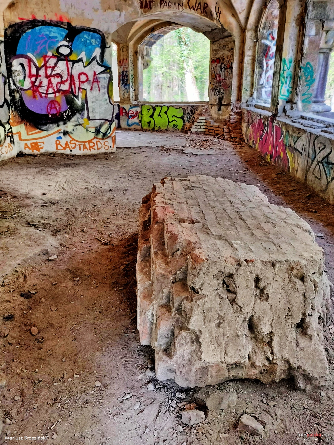 15 kwietnia 2026 , Wnętrze na parterze wieży. Widoczny fragment ceglany nie przebił sklepienia, nie wpadł przez okno, nie oderwał się od kamiennej ściany.Skomentuj zdjęcie |