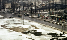 1980 , Skrzyżowanie ulicy Płockiej z ulicą Mazowiecką, zimą 1980 roku. Po prawej stronie widoczny Zakład Narzędzi "VIS". |