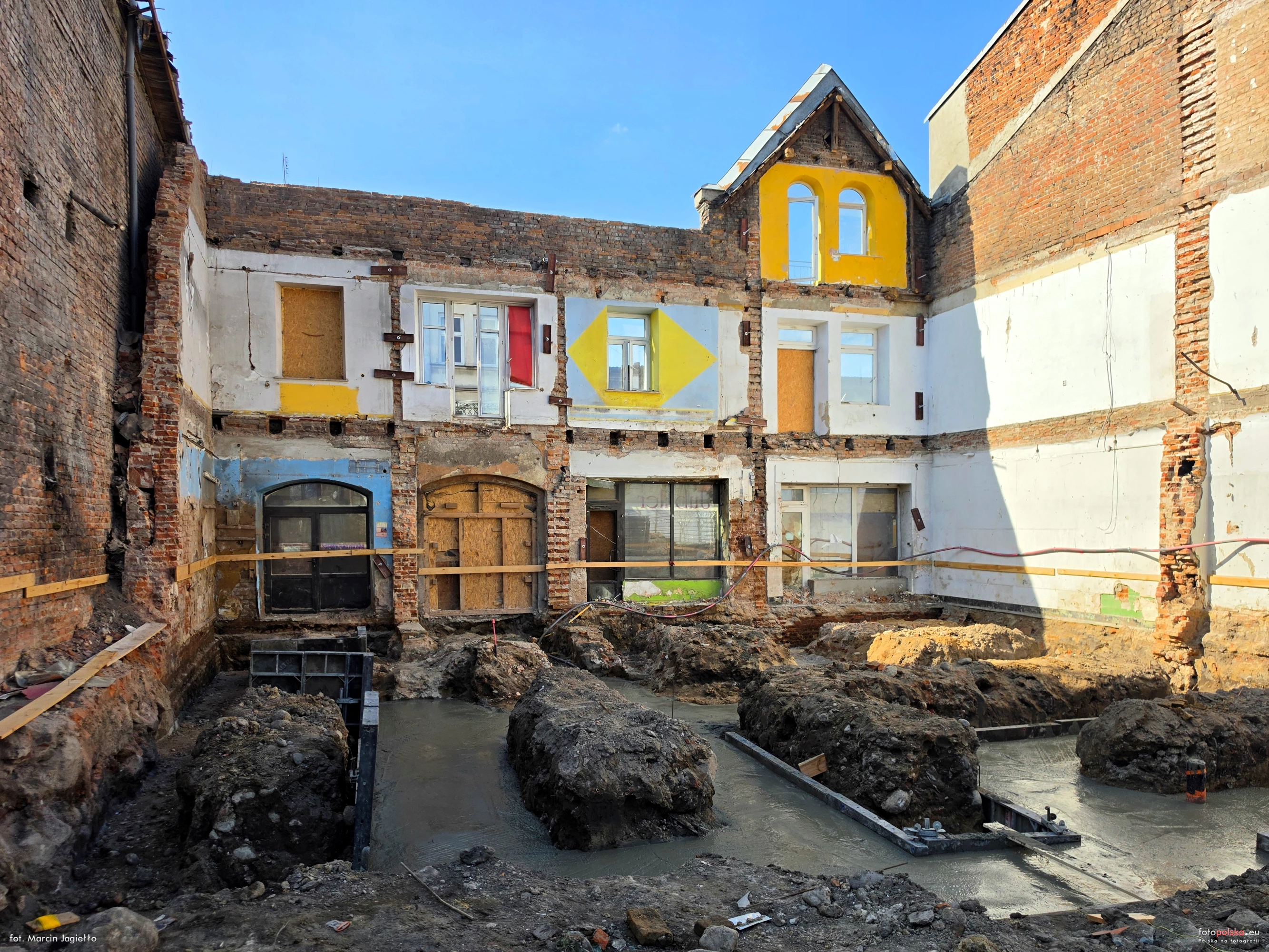 23 marca 2026 , Armii Krajowej 30, widoczna pozostawiona ściana frontowa oraz stabilizacja gruntu pod fundamenty, widoczna ściana będzie jedynym widocznym elementem starej kamienicy po odbudowie budynku. Kamienica remontowana w tzw. stylu belgijskim.Skomentuj zdjęcie |