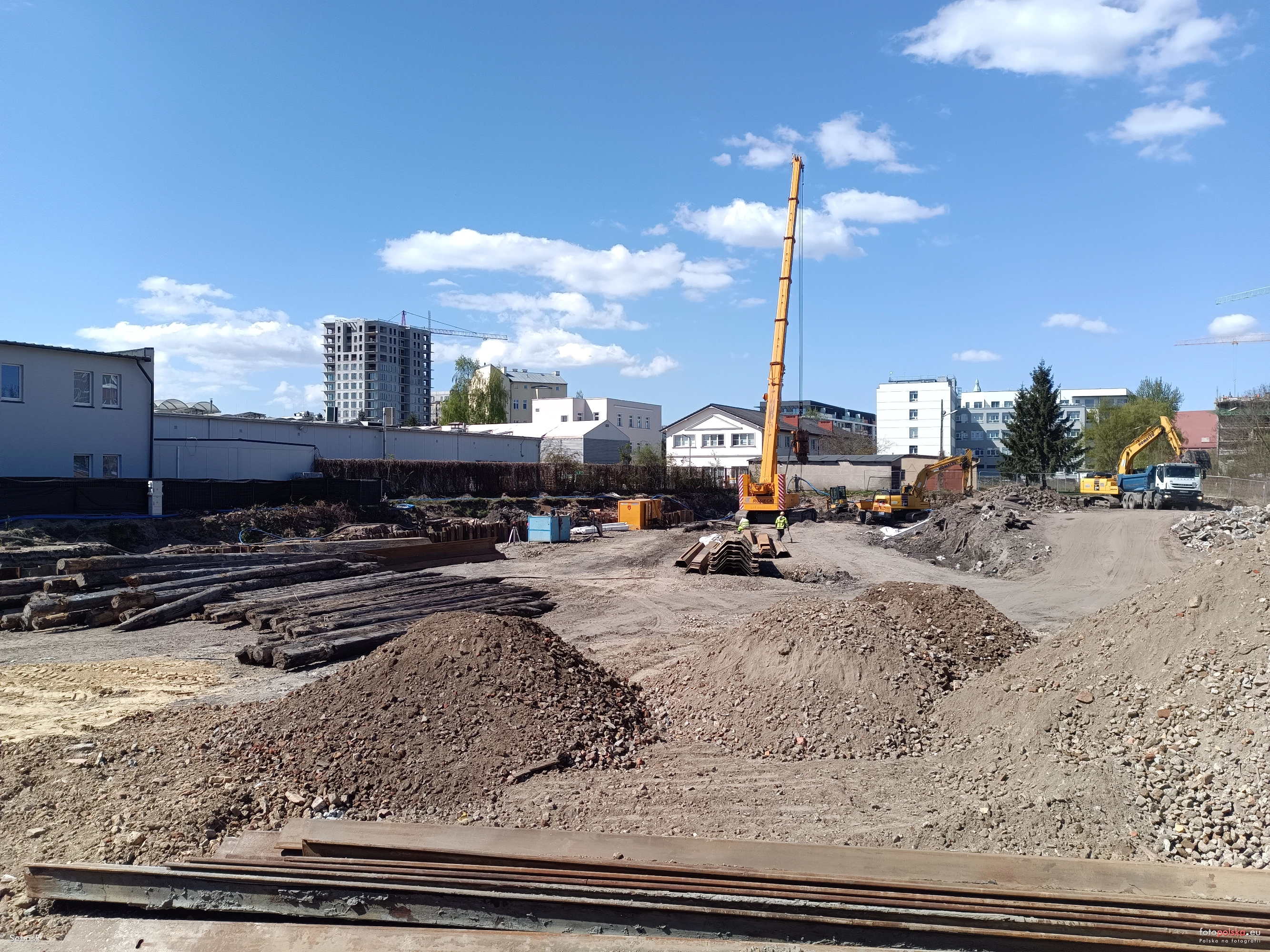 21 kwietnia 2026 , Widok na plac budowy. Po lewej drewniane pale.Skomentuj zdjęcie |