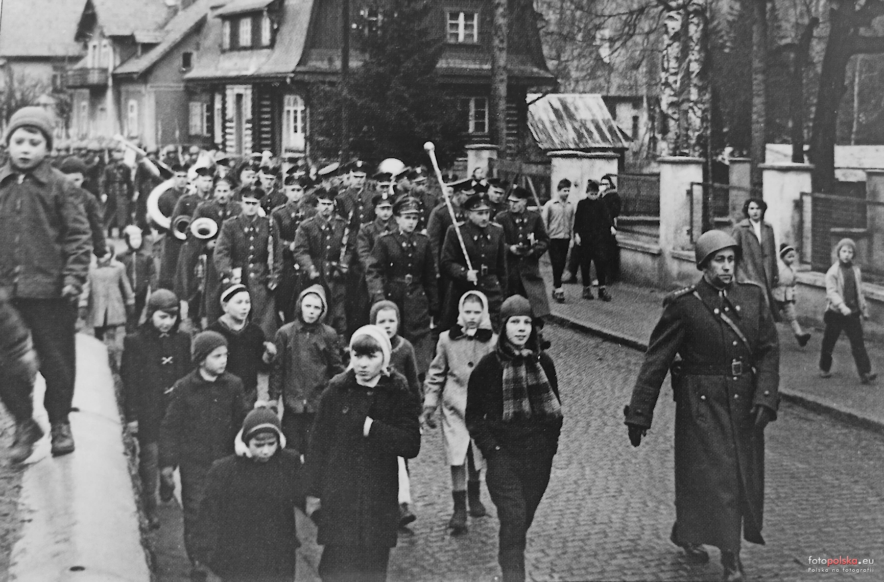 Lata 1958-1960 , Wojsko WOP na ulicy 1 Maja w Szklarskiej Porębie.Skomentuj zdjęcie