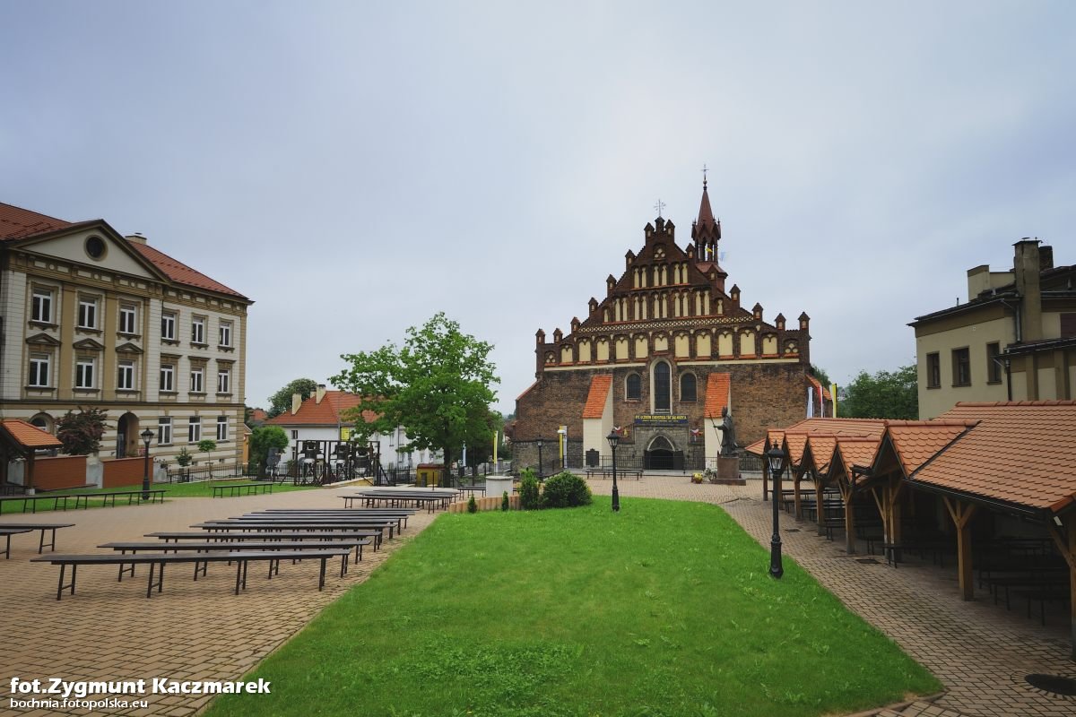 Bazylika św. Mikołaja Sanktuarium Matki Bożej Różańcowej więcej zdjęć (45) Atrakcja turystyczna Zbudowano: 1445 Dawniej: Bazylika św. Mikołaja w Bochni – najstarszy i największy kościół w Bochni, od 1998 roku bazylika mniejsza, od 2003 roku kolegiata. Historia Kościół św. Mikołaja został zbudowany w latach 1440-1445 na miejscu poprzedniej świątyni, zniszczonej przez pożar w 1440 roku. W pierwotnym kształcie był to gotycki halowy kościół ze stosunkowo długim, trójbocznie zamkniętym prezbiterium, przy którym wzniesiono od północy zakrystię oraz kaplicę pod wezwaniem Jedenastu Tysięcy Dziewic (przemianowaną później na kaplicę św. Kingi). Kościół został znacznie uszkodzony przez pożar miasta w 1655 roku, podczas potopu szwedzkiego. Zniszczone zostały m.in. dach i sklepienia. Odbudowa kościoła w stylu barokowym prowadzona była z funduszy przekazanych przez króla Jana Kazimierza i zakończyła się w 1665 roku. W 1768 roku stacjonujący w Bochni konfederaci barscy ufundowali do kościoła nowy ołtarz główny, wykonany w latach 1770-1772 przez snycerza i malarza religijnego Piotra Korneckiego z Gdowa. W 1777 roku, dzięki uzyskanej subwencji z dochodów kopalni soli, kościół został odrestaurowany i zyskał od strony południowej kaplicę Matki Boskiej. W XIX wieku dobudowano do kościoła kruchty północną i południową, skarbczyk nad zakrystią oraz neogotycką sygnaturkę projektu Marcina Borelowskiego. W latach 1901-1905, pod kierunkiem architekta Tadeusza Stryjeńskiego dokonano regotycyzacji kościoła. W 1998 roku kościół uzyskał godność bazyliki mniejszej. W 2003 roku przy kościele erygowana została kapituła kolegiacka, zaś sam kościół został podniesiony do godności kolegiaty. Źródło: Licencja: CC-BY-SA 3.0 Polska pl. św. Kingi więcej zdjęć (170) |
