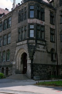 sierpień 2003 , Dawna szkoła budowlana i maszynowa - obecnie budynek Wydziału Architektury PWr. Po renowacji ten fragment budynku wygląda znacznie lepiej niż na zdjęciu.Skomentuj zdjęcie