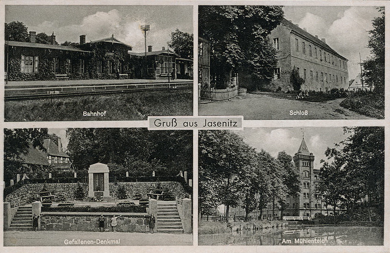 Lata 1920-1930 , Widoki z Jasienicy : stacja kolejowa, dawny dwór myśliwski, pomnik i młyn augustiański.Skomentuj zdjęcie |