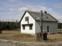 20 marca 2012 , Krzyż przydrożny na tle nowego budynku, ostatniego we wsi.Skomentuj zdjęcie |