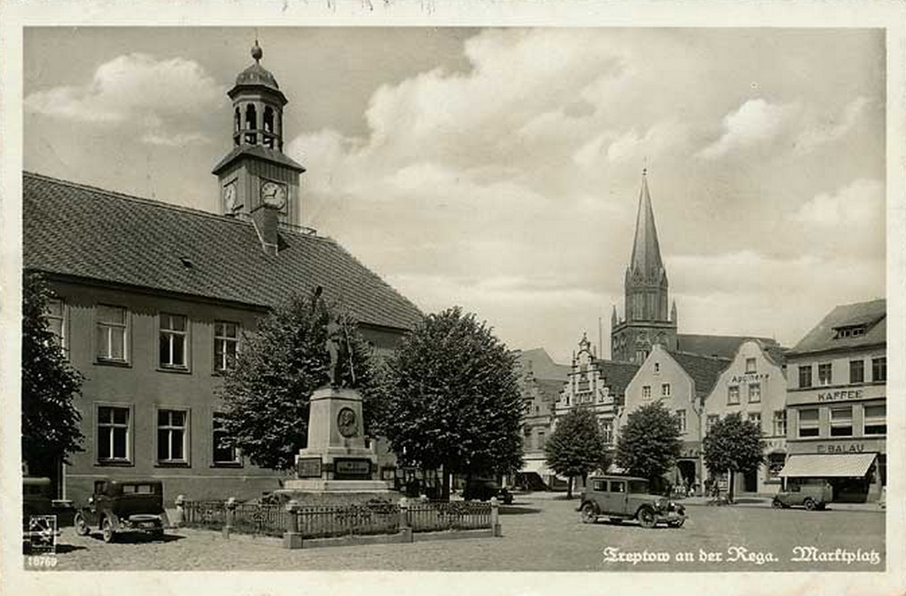 Lata 1926-1930 , Trzebiatów, Rynek z ratuszem i pomnikiem żołnierzy.Skomentuj zdjęcie