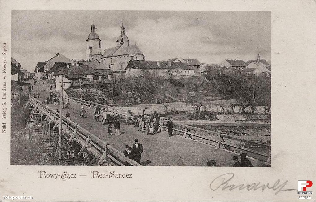 Lata 1900-1901 , Nowy Sącz na początku XX w. Most drewniany w ulicy Lwowskiej.