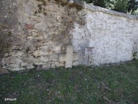9 kwietnia 2012 , Niewielki kamienny krzyż pokutny przylegający do muru otaczającego kościół św. Marcina, od jego północnej strony. Nie widać na nim charakterystycznych rytów narzędzia zbrodni, może są z tyłu.Skomentuj zdjęcie