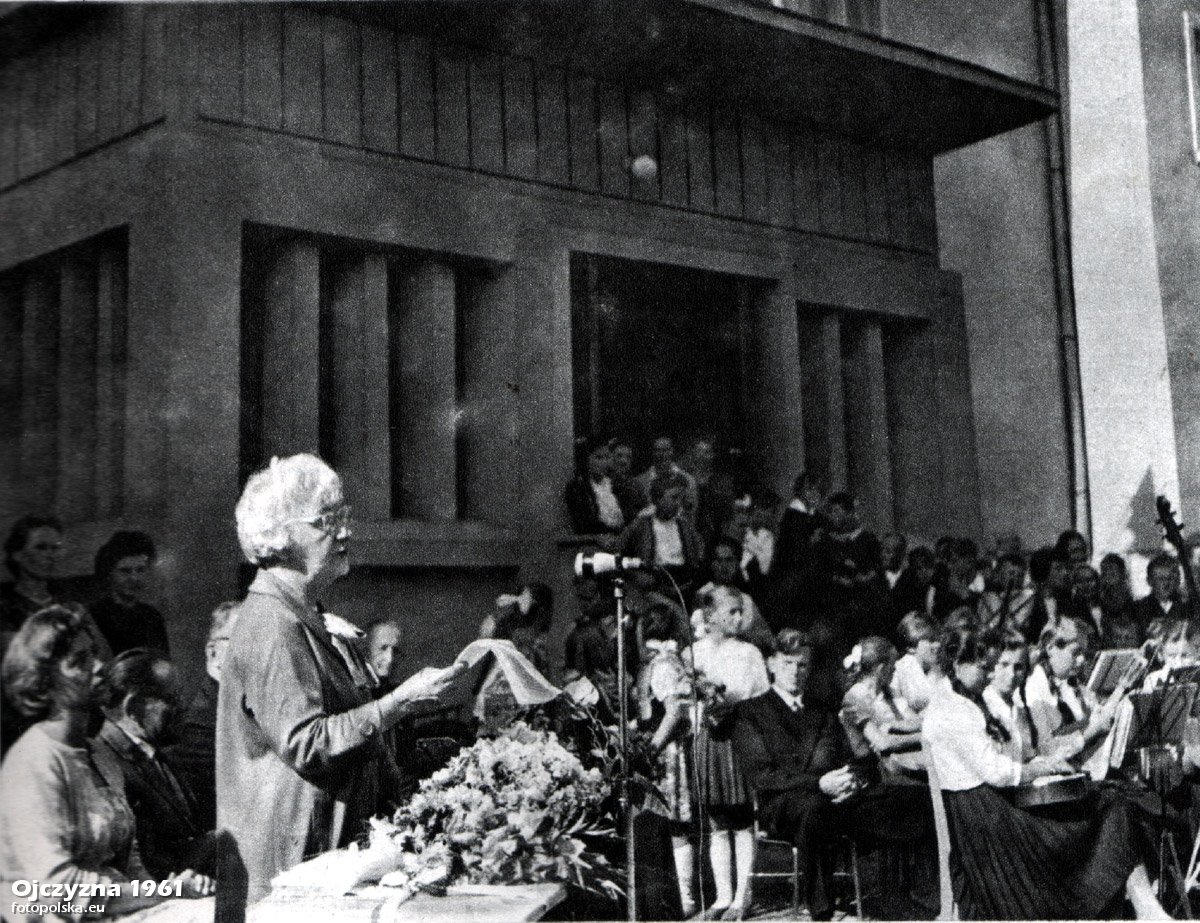 Lata 1960-1961 , Pani Adela Łagodzińska (Prezeska Związku Polek w Ameryce) otwiera uroczyście szkołę w Żarnowcu.Skomentuj zdjęcie |