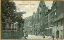 28 pobrań 2251 odsłon 6 średnia ocen Poprzednie i następne zdjęcia Cristoforo Obiekty widoczne na zdjęciu Dolnych Wałów 8 więcej zdjęć (74) Zbudowano: 1904-1906 Dawniej: Urząd Pocztowy nr 1 Zabytek: A/1372/88 z 27.09.1988 Gmach gliwickiej poczty głównej jest jednym z najbardziej charakterystycznych budynków w mieście. Obiekt stanowi ciekawy przekład architektury wzniesionej w stylu historyzmu z dominacją cech neogotyku. Wyróżnia się on wysokimi walorami artystycznymi wykazującymi się zróżnicowaną bryłą, ekspresją form oraz bogatymi dekoracjami. Historia Okres największego rozwoju i prosperity Gliwic przypada na wiek XIX. Pod koniec wieku zdecydowano się zakupić ziemię na potrzeby wzniesienia okazałego gmachu poczty. Budowa obiektu rozpoczęła się w maju 1904 r. Uroczyste oddanie budynku do użytku miało miejsce 6 lipca 1906 r. Od początku gmach wyróżniał się swoją architekturą. Został wzniesiony w stylu historyzmu z dominacją elementów neogotyckich. Co więcej, cechy stylistyczne obiektu stanowią w największym stopniu nawiązanie do średniowiecznej odmiany stylu gotyckiego zw. „pięknym”, który został upowszechniony w XIV w. dzięki działalności warsztatu architektonicznego Henryka Brunsberga na Pomorzu Zachodnim i w Brandenburgii. Gliwicka poczta bardzo szybko się rozwijała i wprowadzała nowości do swoich usług. Już w 1907 r. w budynku pojawił się urząd telegraficzny. W 1910 r. zainstalowano maszynę do wydawania znaczków. Znaczącą nowością było wprowadzenie w 1925 r. poczty lotniczej. Około 1927 r. obiekt został rozbudowany o skrzydło tylnie i częściowo przebudowany m.in. wprowadzono schody w wieży. Po 1945 r. budynek był własnością Poczty Polskiej. Obiekt od momentu powstania nie zmienił swojego przeznaczenia. Opis Budynek jest zlokalizowany w centrum miasta, nieopodal rynku. Jest to obiekt murowany, ściany są licowane cegłą klinkierową z dodatkiem cegły glazurowanej w kolorze zielonym, na betonowych fundamentach, wewnątrz tynkowany. Gmach został wzniesiony na nieregularnym rzucie, zbliżonym do czworoboku, z centralnym dziedzińcem. Bryła jest mocno rozczłonkowana, nakryta dachami dwuspadowymi, natomiast wieżę bramną przekrywa dach o formie ostrosłupa. Dachy pokryte są dachówką. Główny korpus obiektu jest trzykondygnacyjny i podpiwniczony. Budynek bramny jest dwukondygnacyjny. Elewacja frontowa, południowo-zachodnia w części środkowej jest czteroosiowa, symetryczna. Cokół partii przyziemia jest boniowany. Wpisane są w niego niewielkie, prostokątne okna. W części parterowej, na środku, znajdują się otwory wejściowe, zwieńczone łukami odcinkowymi. Zdobią je portale zwieńczone łukami w typie „ośli grzbiet”, które zdobią kwiatony, żabki, służki i rozety o kształcie czworoliścia. W otwory wpisane są dwuskrzydłowe drewniane drzwi z nadświetlem. Zdobią je kratownice, po bokach umieszczone są luksfery. Po bokach drzwi umieszczono po jednym prostokątnym, sześciodzielnym oknie zwieńczonym łukiem ostrym, zabezpieczonym dekoracyjnymi kratami. Między otworami drzwiowymi znajduje się przyścienna latarnia. Nad nią, w ostrołukowej blendzie znajduje się kamienna płaskorzeźba przedstawiająca orła białego. Między częścią przyziemia a pierwszą kondygnacją umieszczono płyciny wypełnione ażurową, kamienną dekoracją złożoną z czteroliści. Drugą kondygnację tworzy rząd czterech podwójnych okien wpisanych w ostrołukowe blendy o profilowanych obramieniach. Okna są prostokątne, czterodzielnie, z nadślemię o drobnych podziałach zamkniętym łukiem ostrym. Powyżej znajdują się dwa, trójkątne, dwukondygnacyjne szczyty. Podzielone są one ostrołukowymi blendami oddzielonymi między sobą lizenami o ażurowej dekoracji złożonej z czteroliści. W dolnej partii blendy wypełnione są prostokątnymi, czterodzielnymi oknami z nadślemię o drobnych podziałach zamkniętym łukiem odcinkowym. Powyżej okien umieszczono dekorację o formie rozety i ażurowej dekoracji złożonej z motywów czteroliści. Na kolejnej kondygnacji umieszczono cztery niewielkie dwudzielne, prostokątne okna z sześciodzielnym, prostokątnym nadświetlem. Blendy zdobione są profilowanym laskowaniem tworzącym w górnej części dwuramienne łuki, nad którymi wpisano rozety złożone z czteroliścia. Trójkątne szczyty zdobione są żabkami. Lewa strona elewacji jest nieco cofnięta w stosunku do części środkowej. Pierwszą kondygnację tworzy rząd pięciu otworów okiennych wpisanych w ozdobne ościeża. Okna są duże, prostokątne, trójdzielnie z trójdzielnym nadślemię zwieńczonym łukiem ostrym. Pomiędzy oknami wpisano tarcze herbowe. Na wysokości drugiej i trzeciej kondygnacji znajduje pięć blend zakończonych trójliściem. Oddzielają je wąskie blendy zakończone łukiem pełnym. Na każdej z kondygnacji wpisane są w nią zdwojone, prostokątne, czterodzielne okna z nadślemieniem o drobnych podziałach zwieńczonych łukiem pełnym (w drugiej kondygnacji) i łukiem ostrym (w trzeciej kondygnacji). Między piętrami umieszczono płycinę z ażurową dekoracją utworzoną z motywów czteroliści. W części dachu znajdują się lukarny. Elewację od strony lewej flankuje dwuosiowy, pozorny ryzalit zwieńczony trójkątnym szczytem. W jego części przyziemia umieszczono dwa obszerne otwory. W otwór wejściowy wpisane są drewniane dwuskrzydłowe drzwi ujęte ostrołukowym, uskokowym portalem zwieńczonym wimpergą zdobioną rozetą, żabkami oraz kwiatonem. Drugi otwór tworzy brama przejazdowa zamknięta metalową kratą. Nad nim znajduje się przyścienna latarnia. Powyżej umieszczono dwie ostrołukowe blendy, w które wpisano zdwojone, prostokątne, czterodzielne okna z nadślemieniem o drobnych podziałach zamkniętych łukiem ostrym. Ozdobny, trójkątny szczyt ujęty jest lizenami wypełnionymi ażurową dekoracją w postaci czt