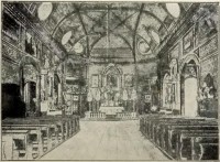 Lata 1875-1906 , Wnętrze drugiego kościoła - „Stary kościół ostrowski był dla rozmiarów swoich, drewnianego sklepienia i pięknego urządzenia wewnętrznego jedynym w swoim rodzaju w naszych archidycezyach” (fragment opisu kościoła z książki „Stary kościół parafialny w Ostrowie” z 1906 r.)Skomentuj zdjęcie |