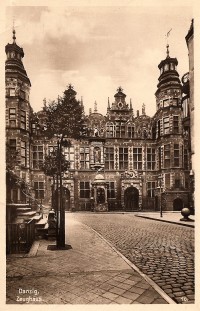 * dwa wielkie rustykowane portale, zwieńczone kartuszami z herbami Gdańska, podtrzymywanymi przez lwy