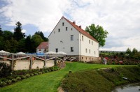 * liczne kolumny z czerwonego permskiego piaskowca wydobytego z sudeckich kamieniołomów czerwonego spągowca. Kolumny te pochodzą z XIX w. zabudowań gospodarczych pobliskich wsi.