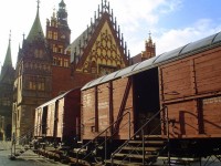 5 maja 2005 , Wagony pod Ratuszem. Takimi przybywali do Wrocławia osadnicy.Skomentuj zdjęcie