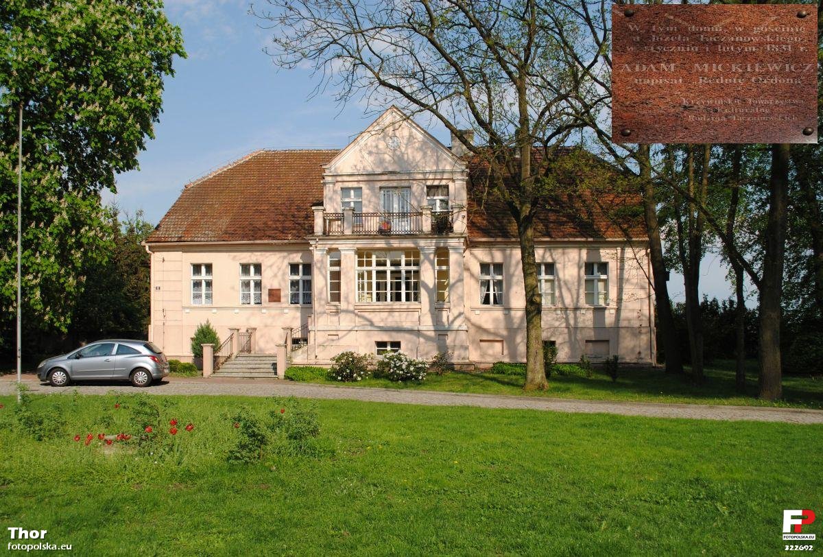 maj 2012 , Choryń - Dwór Taczanowskich z I poł. XIX w., prawdopodobnie dawna oficyna starego dworu. To w tym budynku w styczniu i lutym 1831 r. gościł u Józefa Taczanowskiego Adam Mickiewicz i tutaj napisał "Redutę Ordona". Na wklejce tablica upamiętniająca ten fakt.Skomentuj zdjęcie |