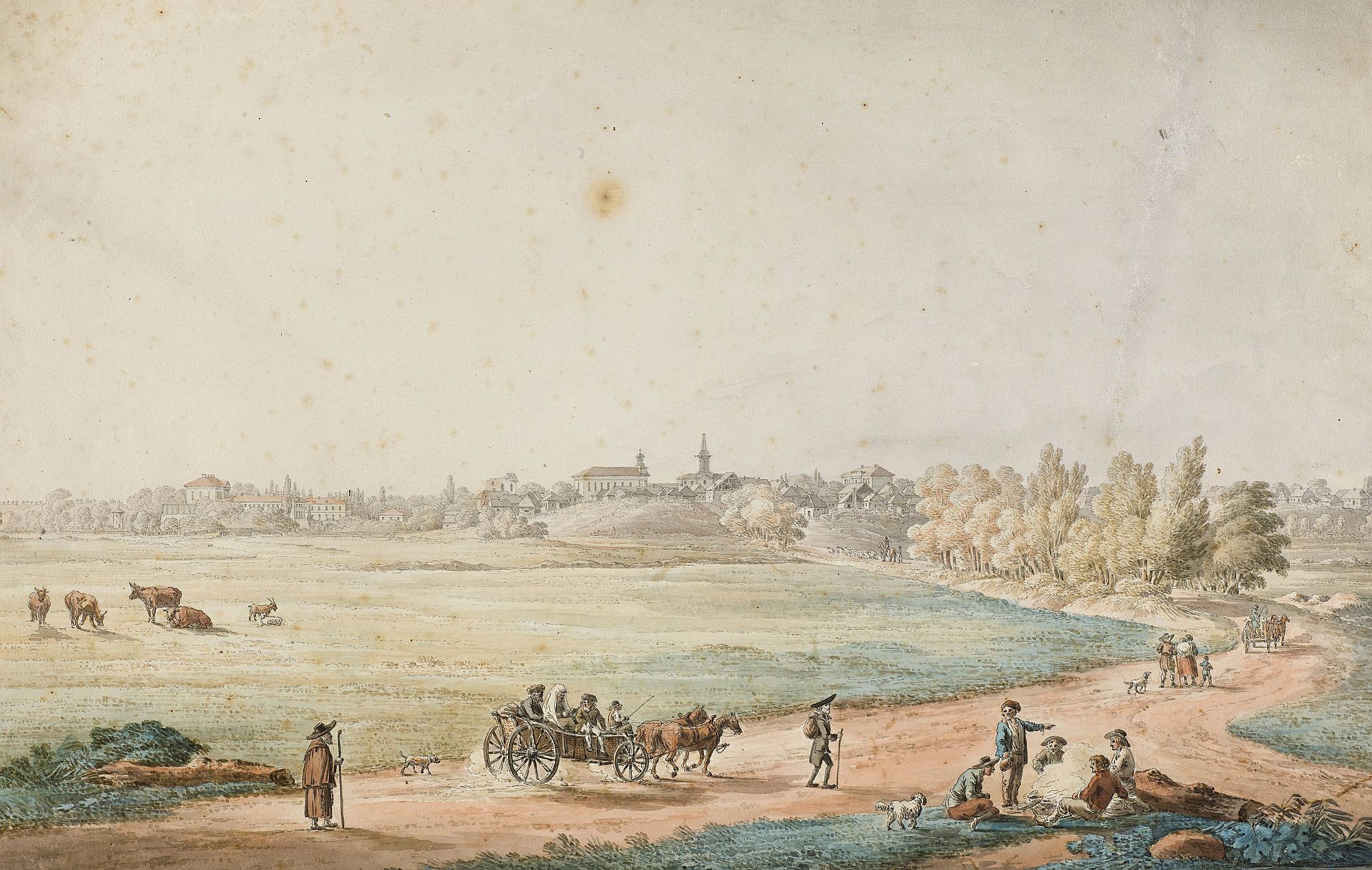 1796 , Kock, widok ogólny. Na pierwszym planie najwyraźniej dzisiejsza ulica Cmentarna. Po lewej pałac.Skomentuj zdjęcie |