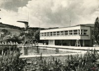Centralną część kąpieliska stanowi basen kąpielowy o wymiarach 50x50 m. W 1934 roku wybudowano murowaną kawiarnię i szatnię dla hokeistów. Utrzymany w modernistycznej stylistyce budynek zaprojektowano jako bryłe złożoną z dwóch przenikających się prostopadłościanów. Budynek był jedną z ciekawszych realizacji polskiej architektury międzywojennej. W 1935 r. ukończono budowę kortów tenisowych, które zimą służyły jako ślizgawka i lodowisko hokejowe. Przy budynku kawiarni wzniesiono 10-metrową wieżę do skoków. W otoczeniu basenu założone zostały poprzecinane alejkami trawniki; od strony potoku Partecznik znajdowała się wznosząca się tarasowo plaża piaskowa.