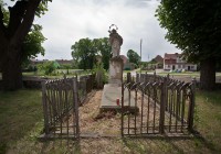 czerwiec 2012 , Figura św. Jana Nepomucena dziwi w tym miejscu. Tu nie było Habsburgów, a głównie ewangelicy. Nepomuk stoi na terenie przykościelnym. Dostawiony jest jakby do nagrobka, który jakoś uchował się prawie w całości. Napisy mało czytelne, na cokole Nepomuka brak chronostychu. Wydaje mi się, ze został w to miejsce skądś zaimportowany.Skomentuj zdjęcie |