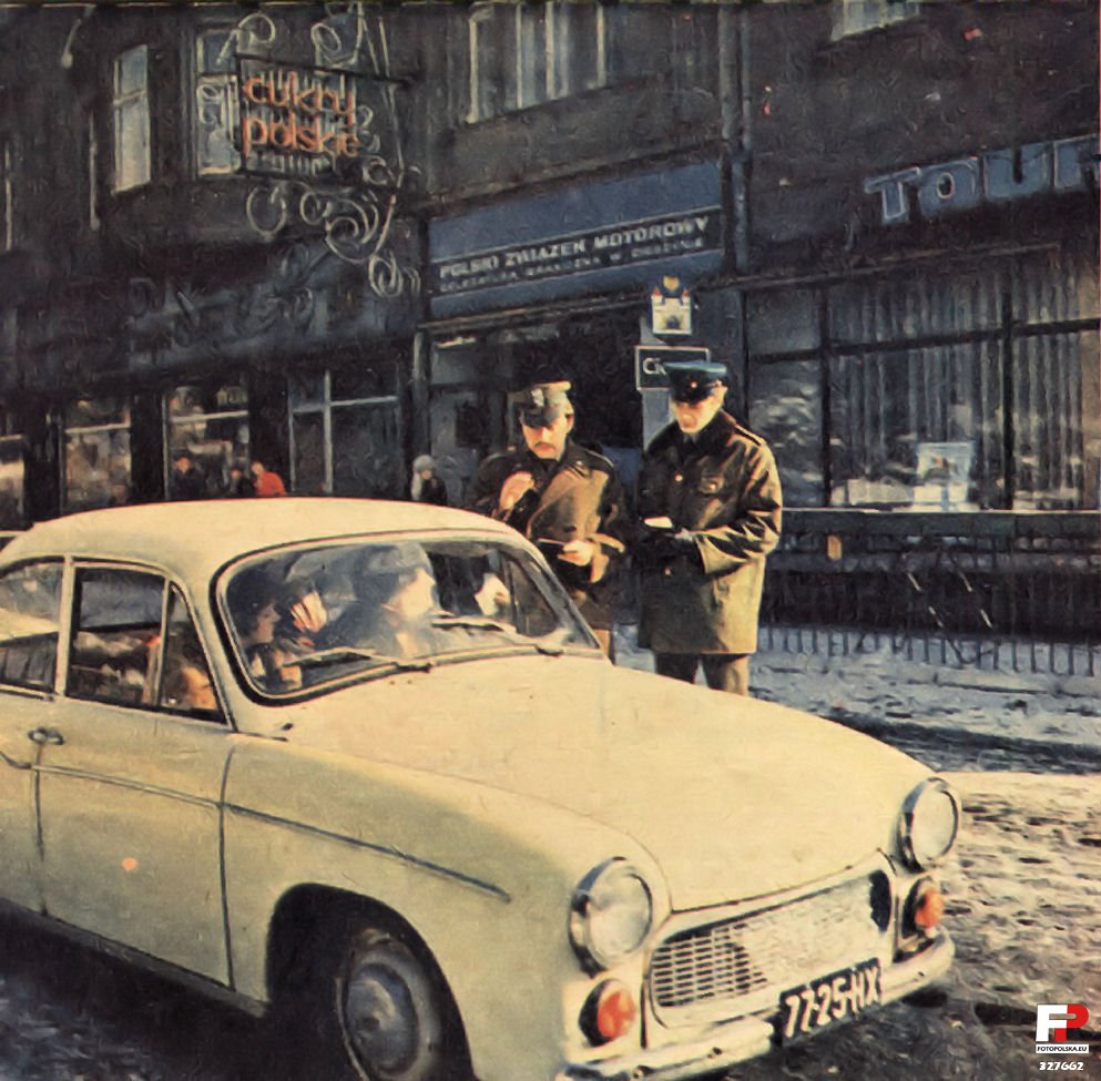 1979 , Polsko-czechosłowacka odprawa graniczna przy ul. Zamkowej, tuż przed Mostem Przyjaźni. Uwagę zwraca neon sklepu "Cukry Polskie". |