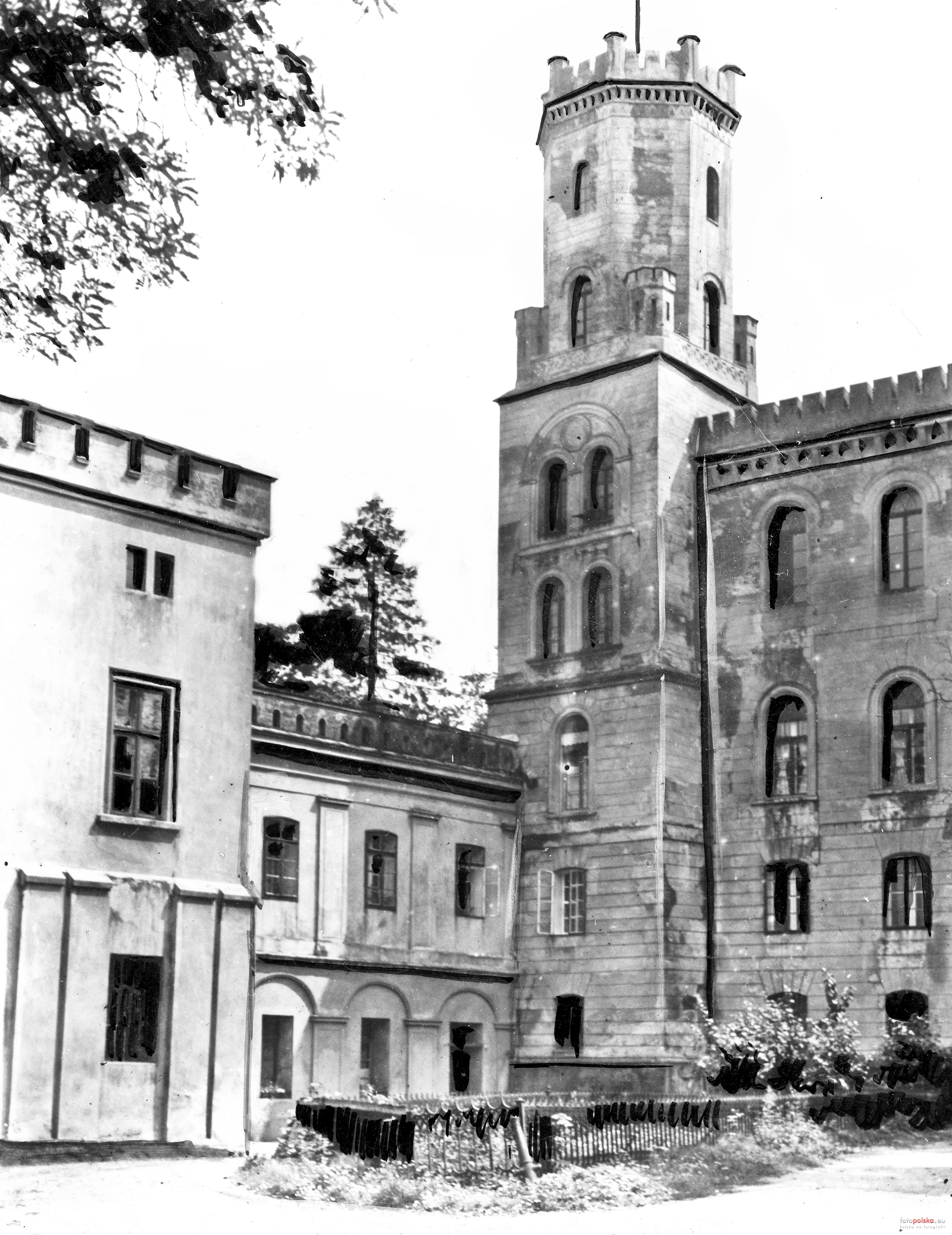 Lata 1920-1939 , Lewe skrzydło zamku z wieżą.