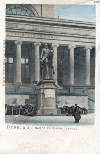 Pomnik cesarza Fryderyka III więcej zdjęć (66) Zbudowano: 1901 Zlikwidowano: ~1945 Dawniej: Kaiser Friedrich III Denkmal pl. Muzealny więcej zdjęć (264) Dawniej: Museum Platz |