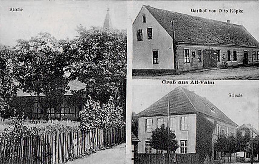 Lata 1900-1910 , Widoki ze Starego Chwalimia : ryglowy kościół, gospoda i szkoła.Skomentuj zdjęcie |