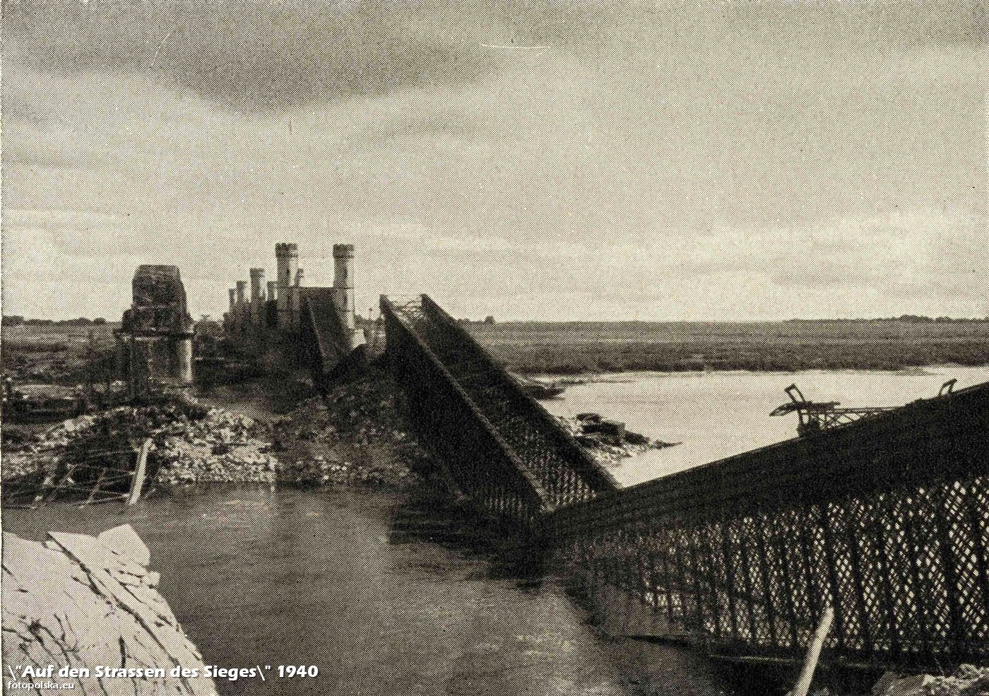 W 1939 r. most został częściowo uszkodzony przez wycofujące się wojsko polskie - całkowitemu zniszczeniu uległy przede wszystkim dwa zachodnie przęsła, uszkodzono też część wschodnią. Z uwagi na zapotrzebowanie wojska już w październiku 1939 r. uruchomiono tymczasową przeprawę z wykorzystaniem niezniszczonej części mostu oraz przęseł ESTB ustawionych łukiem na drewnianych filarach , tak aby jednocześnie prowadzić odbudowę wzdłuż osi mostu.