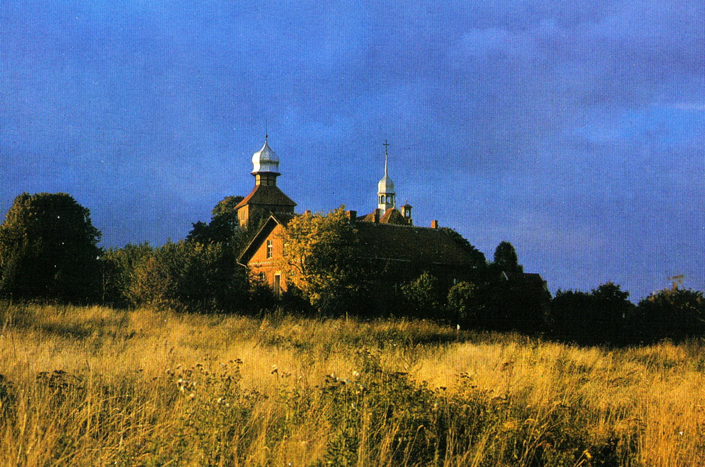 Lata 1995-1999 , Sząbruk, pejzaż wiejski z kościołem parafialnym.Skomentuj zdjęcie |