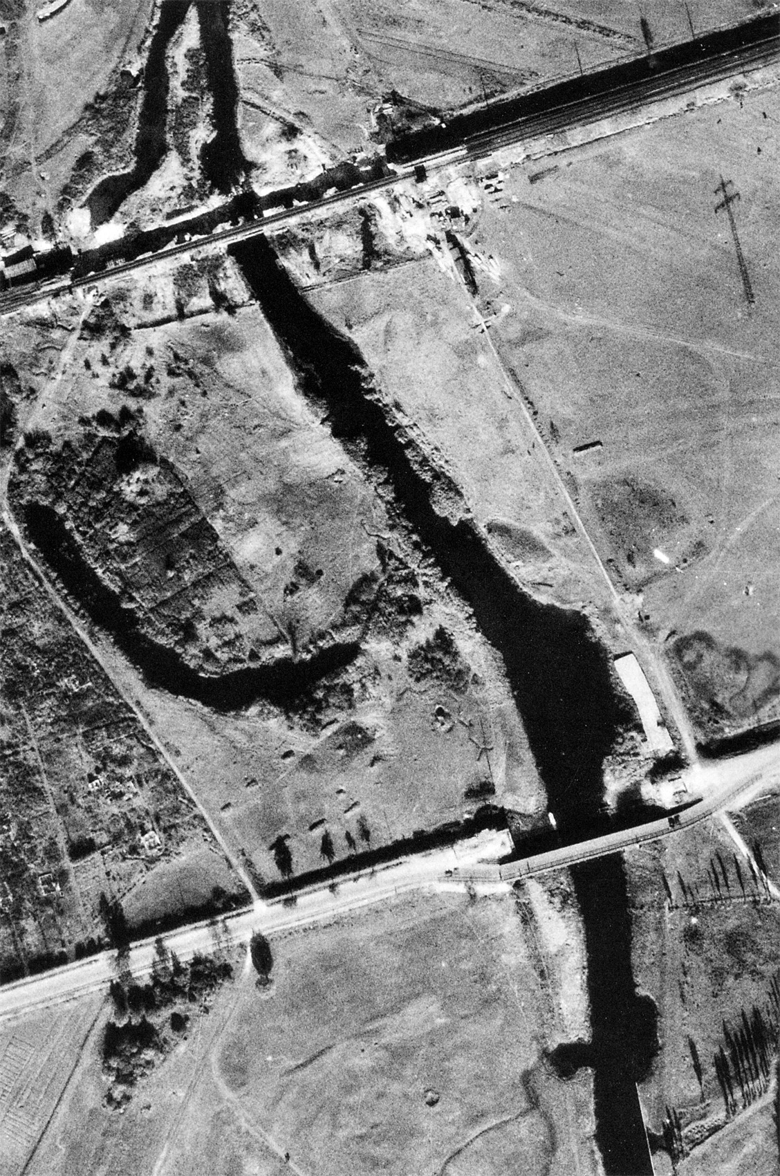 1947 , Mosty - drogowy i kolejowy między Psim Polem a Mirowcem. Widać, że zbudowano tymczasowy most drogowy w ciągu ulicy Krzywoustego a na linii kolejowej Wrocław - Oleśnica brakuje czynny jest tylko jeden tor. Do zdjęcia dołączone jest współczesne zdjęcie porównawcze.Skomentuj zdjęcie