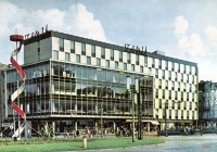 Budynek z przeszkloną bryłą został wzniesiony w latach 1958−1962, według projektu Mieczysława Króla i Juranda Jareckiego, jako jeden z pierwszych obiektów, będących elementem przebudowy Rynku w latach sześćdziesiątych i siedemdziesiątych XX wieku. Gmach oddano do użytku dnia 4 września 1962; jego kubatura wynosi 35 000 m3. W latach 2008−2010 przebudowano elewację budynku. Autorem projektu przebudowy był Rafał Król − syn Mieczysława Króla.