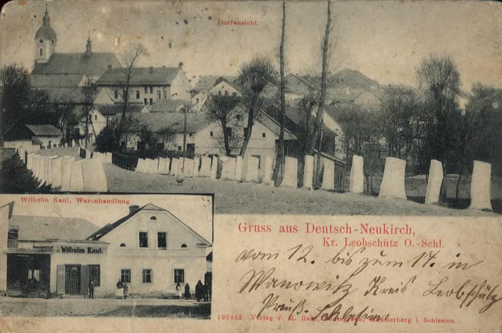 Lata 1900-1907 , Panorama Nowej Cerekwi i sklep Wilhelma Kaula.Skomentuj zdjęcie |