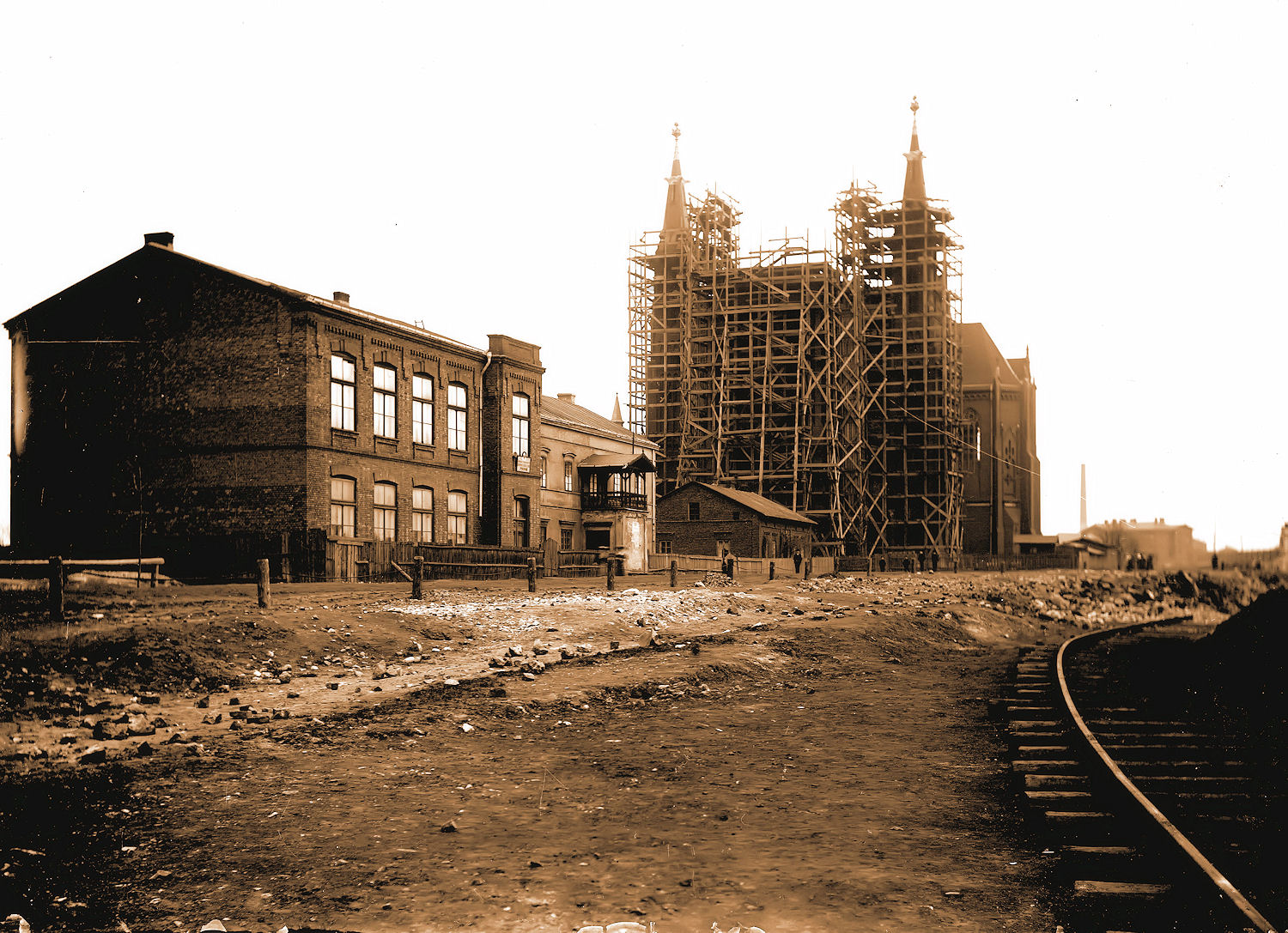 Lata 1900-1910 , Na pierwszym planie budynek, w którym obecnie mieści się Gimnazjum nr 1 w okresie, gdy mieściła się tam szkoła elementarna zwana "Szkołą Kocota". Najstarszy dziś samodzielny budynek szkolny w Dąbrowie Górniczej. Za nim Bazylika NMP Anielskiej Zdjęcie udostępnione przez Muzeum Miejskie "Sztygarka" w Dąbrowie Górniczej.Skomentuj zdjęcie