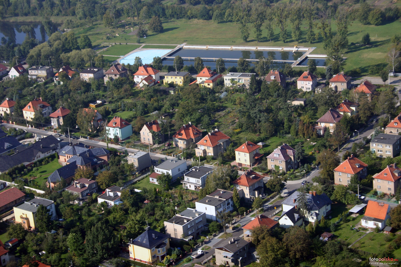 24 września 2005 , Oporów na zdjęciu lotniczym. Zabudowa ulic Darwina i Śniegockiego. W tle niszczejący obecnie poniemiecki basen przy ulicy Harcerskiej.Skomentuj zdjęcie |