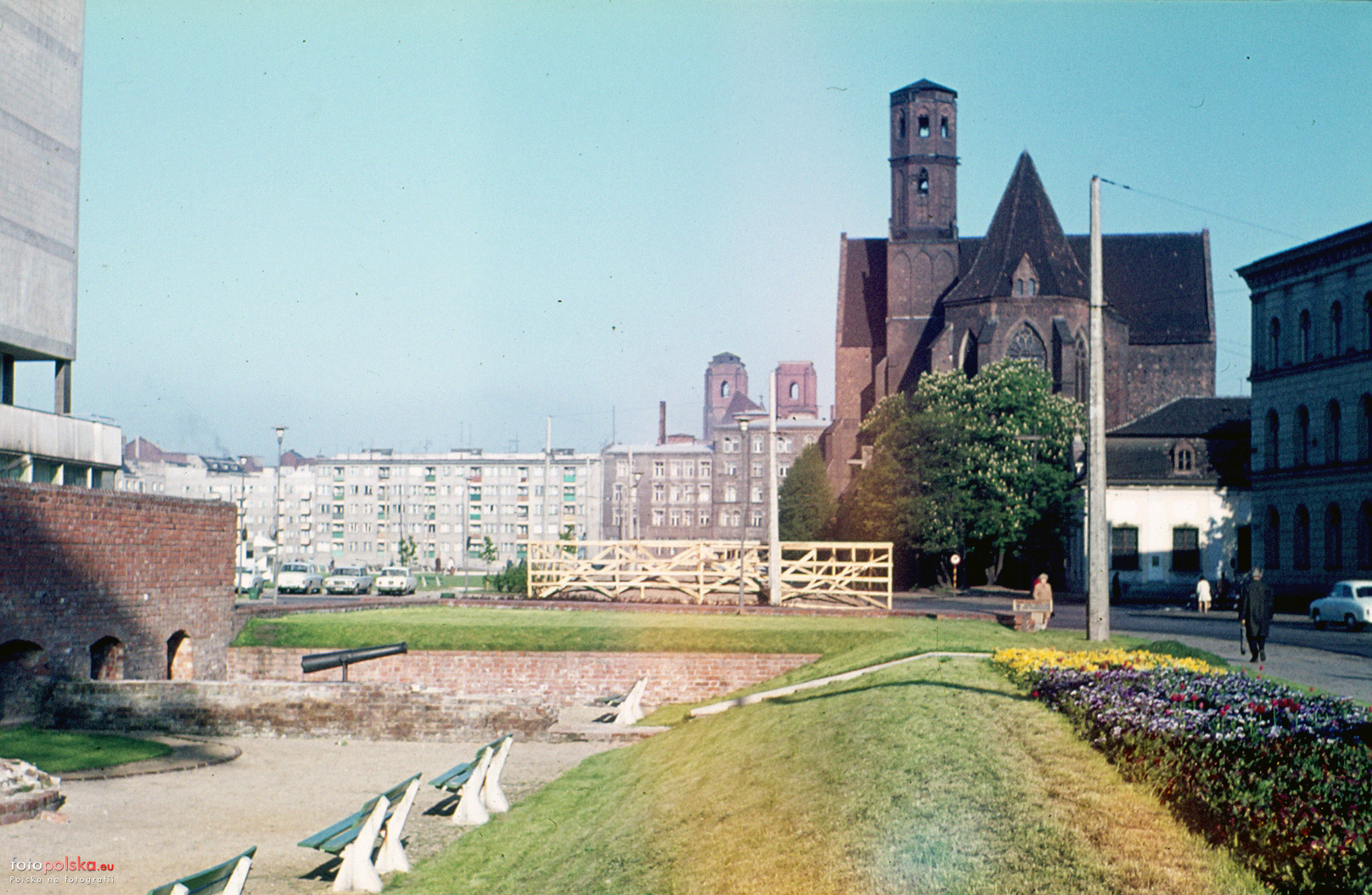 maj 1973 , To zdjęcie dedykuję naszemu specjaliście od placu Dominikańskiego - Esskiemu. Widok spod nieistniejącego obecnie hotelu "Panorama" w stronę Placu Dominikańskiego. Obecnie pusty plac po lewej stronie zajmuje Galeria Dominikańska a domów widocznych w tle z tego miejsca nie widać ponieważ zasłania je budynek "Justin Center".