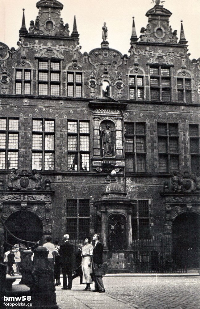 * dwa wielkie rustykowane portale, zwieńczone kartuszami z herbami Gdańska, podtrzymywanymi przez lwy