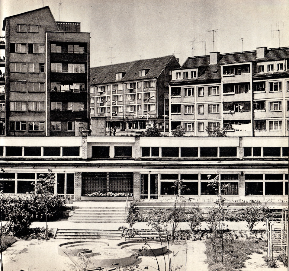 Lata 1975-1977 , Nowe przedszkole na nowej Starówce. Za przedszkolem po lewej stronie blok Sołtysia nr 1. Po prawej stronie bloki przy Grodzkiej.Skomentuj zdjęcie |
