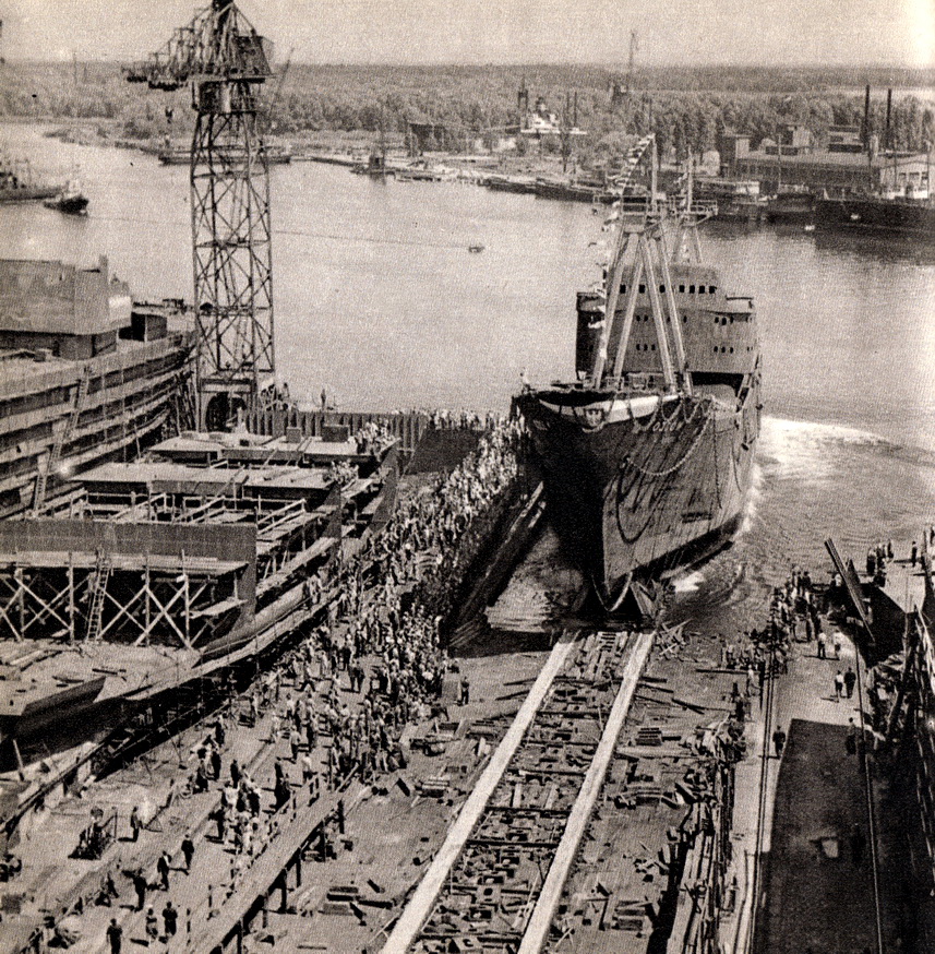 1959 , Wodowanie na pochylni Odra w Stoczni im. Adolfa Warskiego.Skomentuj zdjęcie