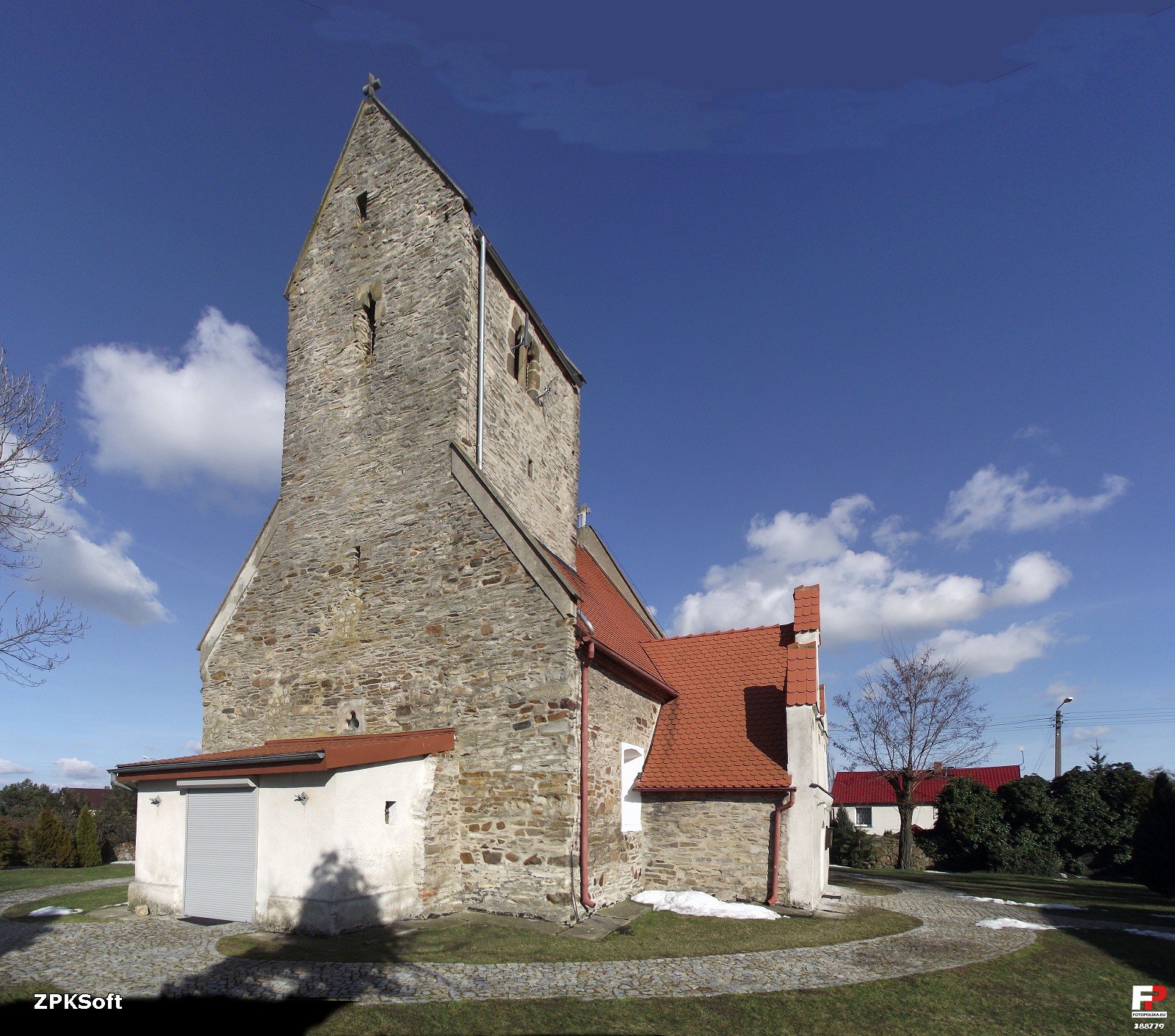 1 pobranie 1593 odsłony 5.84 średnia ocen Poprzednie i następne zdjęcia ZPKSoft Obiekty widoczne na zdjęciu Kościół św. Urszuli więcej zdjęć (19) Zbudowano: pocz.XIV w. Zabytek: 1244 z 01.03.1965 Kościół filialny pod wezwaniem św. Urszuli, wzniesiony na początku XIV wieku,przed 1316 rokiem, kiedy to po raz pierwszy został wzmiankowany. Powtórnie wzmiankowany, jako parafialny, w 1335 r. w spisie dziesięcin nuncjusza Galhardusa. Z 1508 roku pochodzi dzwon. Około 1600 r. powstaje kruchta południowa. Jest to Świątynia gotycka, położona pośrodku wsi, między drogami układu owalnicowego. Orientowana; murowana z ciosów granitowych, z fasadą kruchty południowej. Kościół jednonawowy, z nawą prezbiterium, zakrystią od północy, kruchtą od południa oraz współczesnym przedsionkiem od zachodu na planie prostokątów. Od zachodu wieża na planie kwadratu, wciągnięta do wnętrza nawy. Prezbiterium dwuprzęsłowe, niższe i węższe od nawy, oddzielone od nawy ostrołukową arkadią tęczy. Nawa dwuprzęsłowa, przęsło zachodnie, wydzielone dwoma masywnymi filarami podwieżowymi, które wspierają ostrołukowe arkady, środkowa szersza i wyższa; nad bocznymi wykute otwory zamknięte odcinkowo. Z filarów przerzucone ostrołukowe arkady wsparte na ścianie zachodniej, dzielące zachodnie przęsło nawy na trzy części. Prezbiterium nakryte sklepieniem krzyżowym, z sześcioma kamiennymi wspornikami. Wschodnie przęsło nawy i boczne części zachodniego, kryte stropem, w podwieżowej części przęsła zachodniego sklepienie krzyżowe. Zakrystia kryta sklepieniem kolebkowym strzałce, kruchta południowa – stropem. W ścianie wschodniej prezbiterium okno ostrołukowe z motywem trójliścia w górnej części, od zewnątrz, dwudzielne; w ścianie zachodniej nawy - trójlistne. Pozostałe okna w odcinkowo zamkniętych, głębokich, obustronnie rozglifionych ościeżach, w prezbiterium i nawie przeważnie półkoliście zamknięte, w zakrystii, prostokątne i okrągłe. SAKRAMENTARIUM - we wschodniej ścianie prezbiterium–piaskowce, utworzone na początku XVI wieku. Prostokątna nisza w obramieniu z przedstawieniem lilii, zwieńczonym wimpergą; krata żelazna z płaskich prętów z rozetkami. OŁTARZ GŁÓWNY - barokowy z początku XVIII wieku ze współczesnym tabernakulum, architektoniczny, jednokondygnacyjny, jednoosiowy. Wsparte na wysokim cokole pary kolumn kompozytowych, wewnętrznie wysunięte ku przodowi, dźwigają profilowane belkowanie z okiem Opatrzności w glorii. Zwieńczenie zamknięte półkoliście, obrazy; w polu głównym – Chrzest Chrystusa, w zwieńczeniu św. Urszuli. Na belkowaniu nad kolumnami rzeźby św. Katarzyny i św. Barbary. Dekorowany akantem, wieńcami laurowymi i podwieszonymi pękami kwiatowymi. CMENTARZ PRZYKOSCIELNY - na planie zbliżonym do prostokąta. Mur cmentarny z kamienia polnego i ciosów granitowych z bramkami ceglanymi. Pomnik nagrobny, obecnie na zewnątrz muru kościelnego, prostopadłościenny, z czterema owalnymi polami inskrypcyjnymi (dwa z nich nieczytelne), pozostałe upamiętniają; grenadiera Franza Pfeiffera (zm. 1870 r.) i żołnierza Carla Zimmermanna (zm. 1866 r.). |