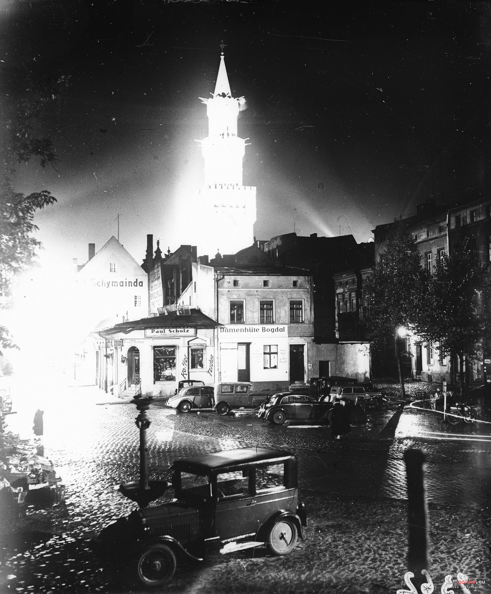 Lata 1936-1938 , Plac Wolności w 1938 roku. Kiedyś w tym miejscu był postój dorożek, stąd dawna popularna nazwa Doroscchkenplatz. Postój zmienił się póżniej w parking samochodowy i ten stan rzeczy trwa do dziś. Przed wojną o dawnym postoju dorożek przypominała widoczna na zdjęciu stojąca tuż za automobilem z pierwszego planu Fontanna Końska w której poiły się konie - była to pierwsza fontanna w historii Opola.Skomentuj zdjęcie