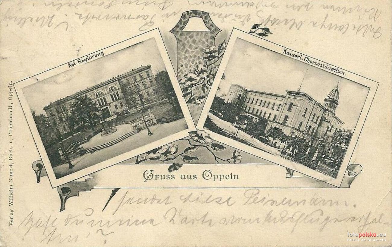 Lata 1891-1895 , Gruss z Oppeln. Gmachy starej rejencji i Poczty Głównej.Skomentuj zdjęcie