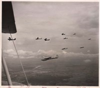 Lata 1953-1954 , Swięto Lotnictwa w Warszawie, Pokaz pilotażu na lotnisku Centralnego Aeroklubu L.P.Ż., Jednym z efektownych punktów pokazu była zespołowa akrobacja 8 szybowców - "Much", Na zdjęciu "Muchy" przed odczepieniem od samoloów CSS-13, Fot St. Wdowiński. CAF.Skomentuj zdjęcie