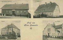 Lata 1900-1914 , Lasowice Małe. Od góry, od lewej zajazd Fritza Miski, leśniczówka, pałac, szkoła ewangelicka.Skomentuj zdjęcie |