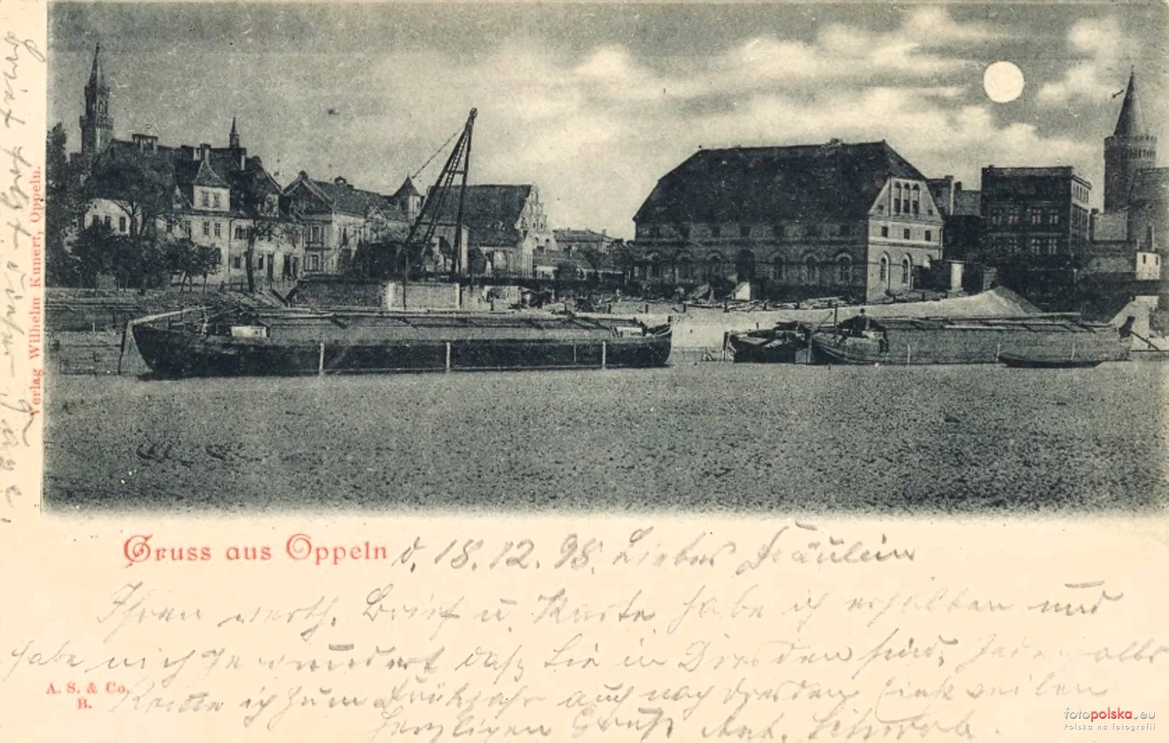 15 pobrań 3619 odsłon 6 średnia ocen Poprzednie i następne zdjęcia Cristoforo Obiekty widoczne na zdjęciu Hotel "Piast" więcej zdjęć (91) Zbudowano: 1822-1823 Dawniej: Skład żelaza, Urząd probierczy, Sklep kolonialny Schymaindy Zabytek: 2096/84 z 27.08.1984 Budynek obecnego hotelu "Piast" wybudowano w latach 1822-1823 za kwotę 4775 talarów. Służył za skład żelaza. W 1894 roku wymieniany jest jako siedziba urzędu probierczego, w kilka lat później funkcjonuje w nim już sklep kolonialny rodziny Schymainda. W 1923 roku wybuchł w budynku pożar. Odbudowując go, chodnik przy ul. Piastowskiej poprowadzono w arkadach, poświęcając na to część budynku. Rozbudowano wtedy także tylną część budynku. Oprac. Adam Krzyształowicz. Żuraw przeładunkowy więcej zdjęć (25) Dawniej: Kahn Verladungsstelle, Mastenkrahn Rzeka Odra (Opole) więcej zdjęć (399) Dawniej: Oder ul. Piastowska więcej zdjęć (1602) Dawniej: Hafen Strasse |