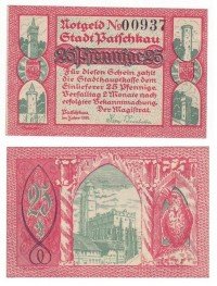 1921 , Paczkowski notgeld o nominale 25 pfennigów, wydany przez tutejszy magistrat.Skomentuj zdjęcie |
