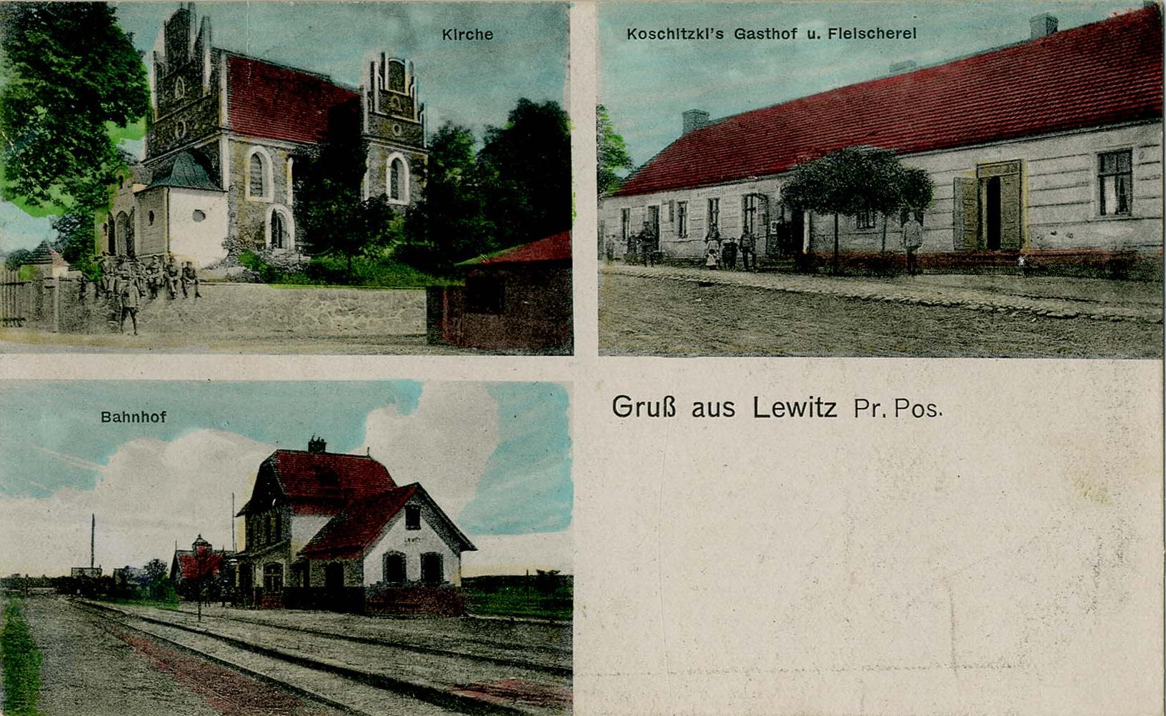 Lata 1900-1920 , Lewice -Stacja kolejowa, kościół, gospoda.