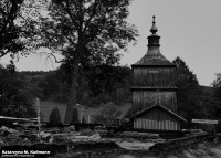 14 września 2007 , Komańcza (ukr. Команьча). Dawna parafialna cerkiew greckokatolicka p. w. Opieki Matki Bożej wybudowana w 1802 r., obecnie prawosławna. Na zdjęciu stan świątyni rok po pożarze. Spłonęła doszczętnie 13.IX.2006 r., uratowano tylko widoczną dzwonnicę. 4.IX.2007r.Skomentuj zdjęcie