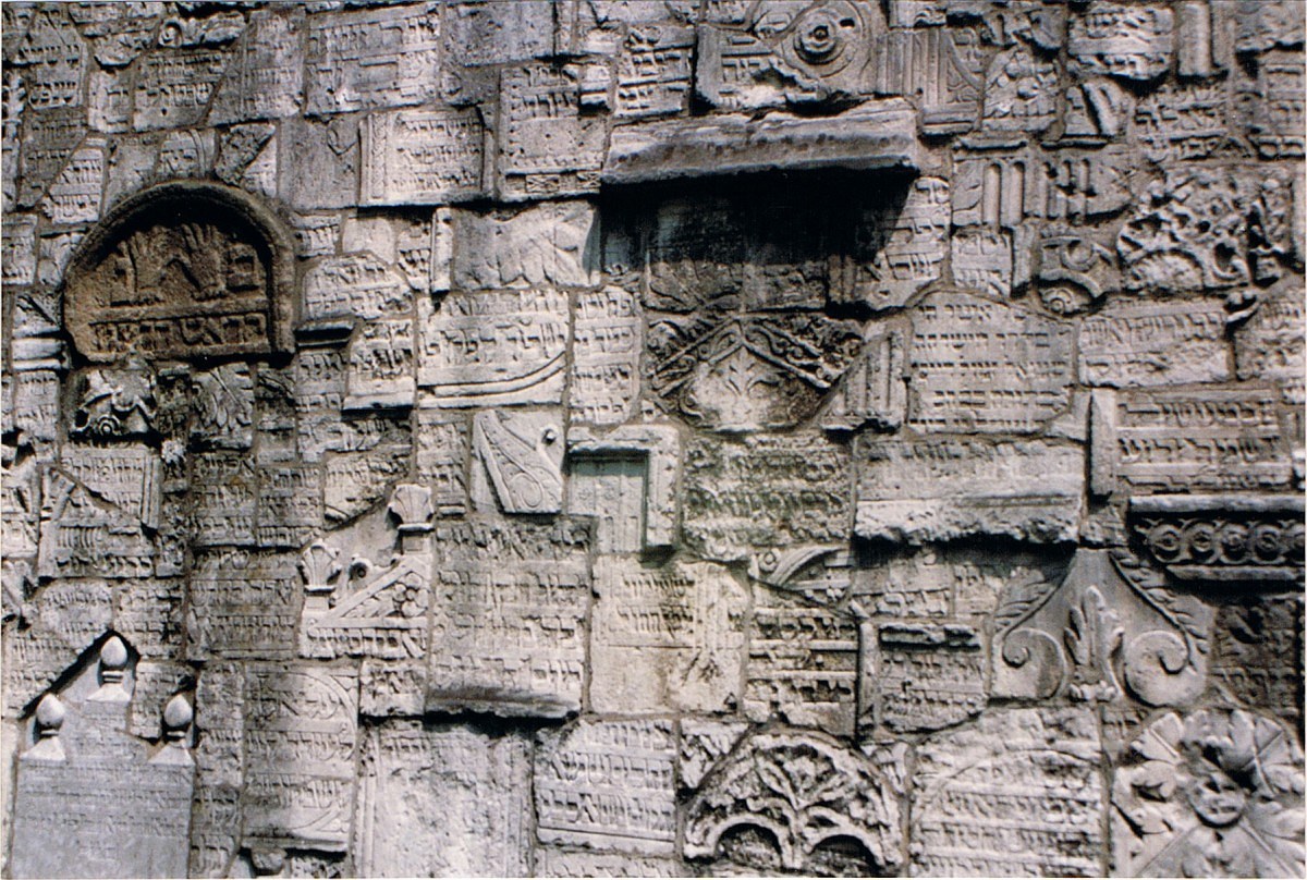 wrzesień 1991 , Cmentarz Remuh. Fragmenty nagrobków w murze cmentarnym.Skomentuj zdjęcie |