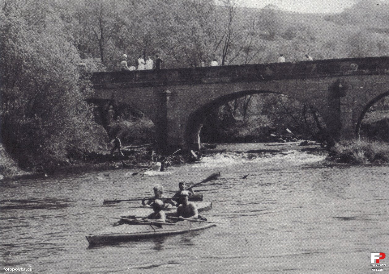 Lata 1985-1989 , "Spod zabytkowego mostu na Bobrze corocznie wyruszają kajakarze z całej Europy na Międzynarodowy Spływ Kajakowy pod hasłem "Bóbr - rzeka Piastów".Skomentuj zdjęcie